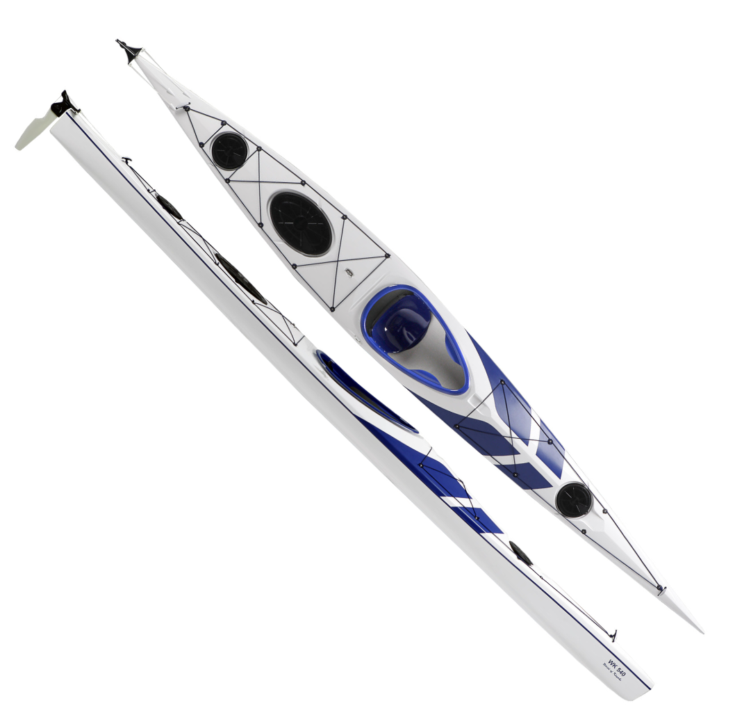 World of Kayaks is an Estonian manufacturer with many years of experience. A really fine craftsmanship and a sense of maintaining high quality distinguish the kayaks and the fact that the price is attractive does not make things worse. Just like its little sister WK 500, the longer WK 540 is noticeably easy to drive but still stable enough for beginners. The cockpit is spacious and provides free legroom for those who like a sitting position for exercise paddling, but there are wings on the frame that enable Eskimo turns and contact in rough seas. Narrow in front of the cockpit so that you get a tight paddle position. Easy to edge to make it more maneuverable in windier conditions. Long waterline and fast hull distinguish the WK540 with adjustable backrest. The kayak is also equipped with knee supports and a rudder that is easy to handle. Fittings for float rescue, stainless steel locking eye and handles in the bow and stern are standard. 20cm round hatch on the foredeck and 44x26cm oval and a round 20cm on the aft deck. This extra round hatch on the aft deck is really smart as it makes it easier to stow and access what you have in the stern. Rudder and easily adjustable pedal stand are of course also included as standard.